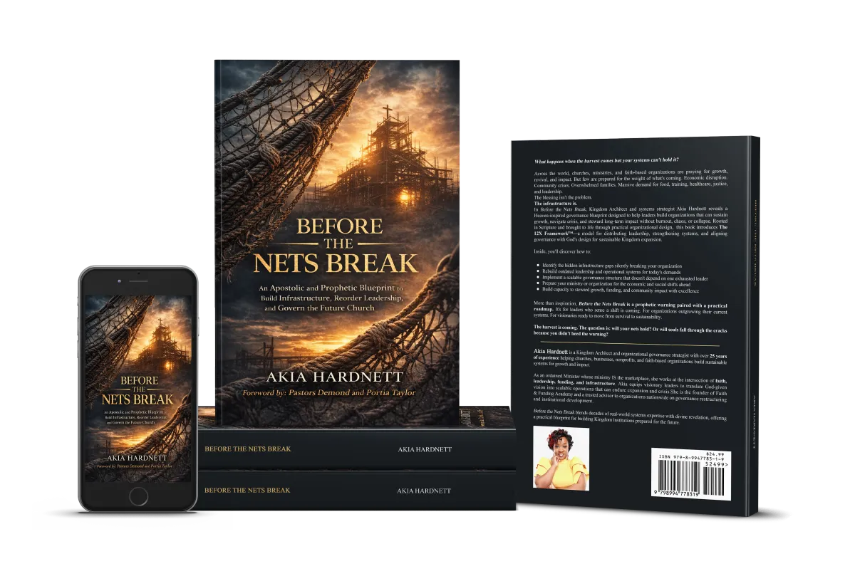 Akia Hardnett is a Kingdom Architect and systems strategist who works at the intersection of faith, governance, and organizational infrastructure. Her work focuses on helping churches, ministries, and faith-based organizations build the capacity required to sustain growth, navigate crisis, and steward long-term impact without burnout or collapse.